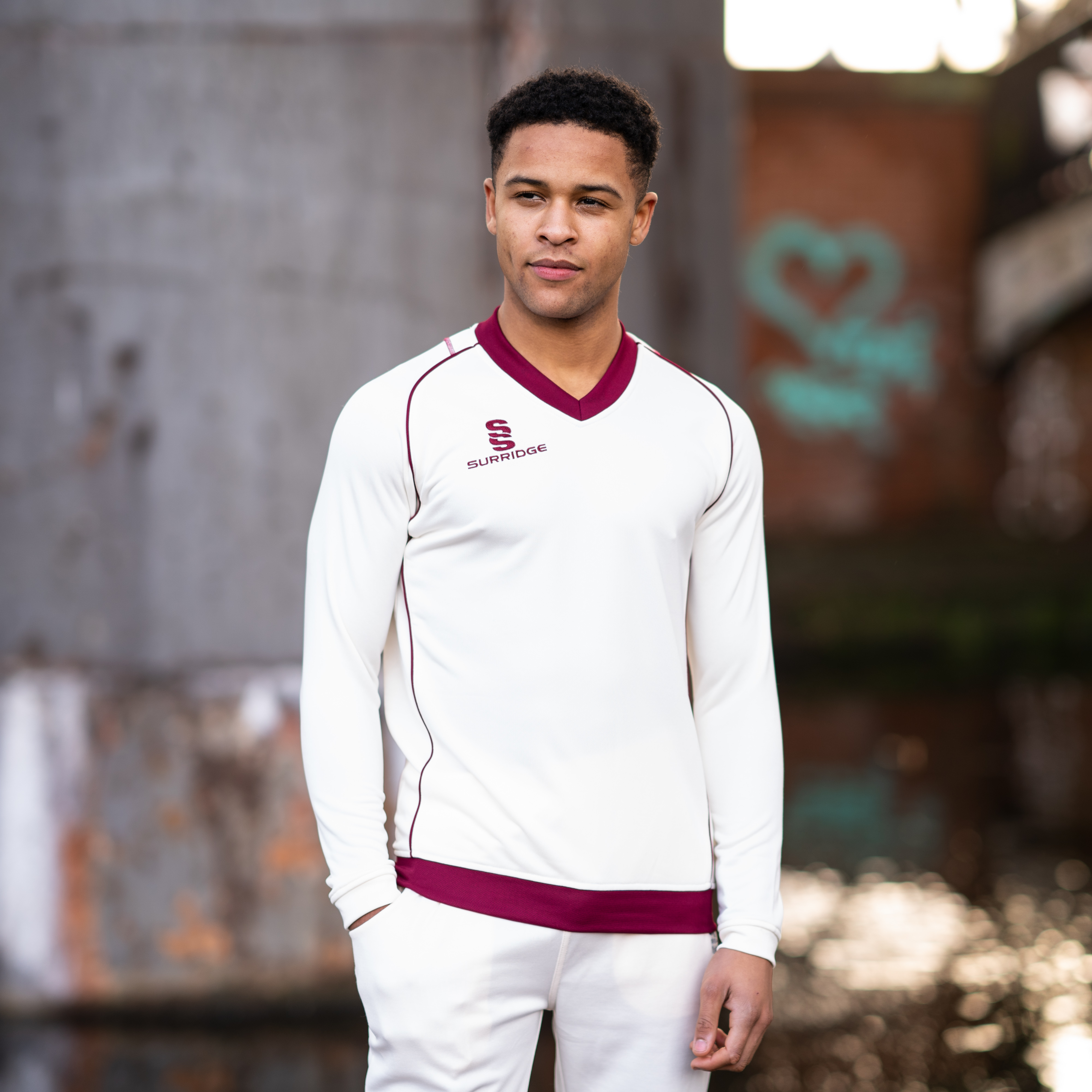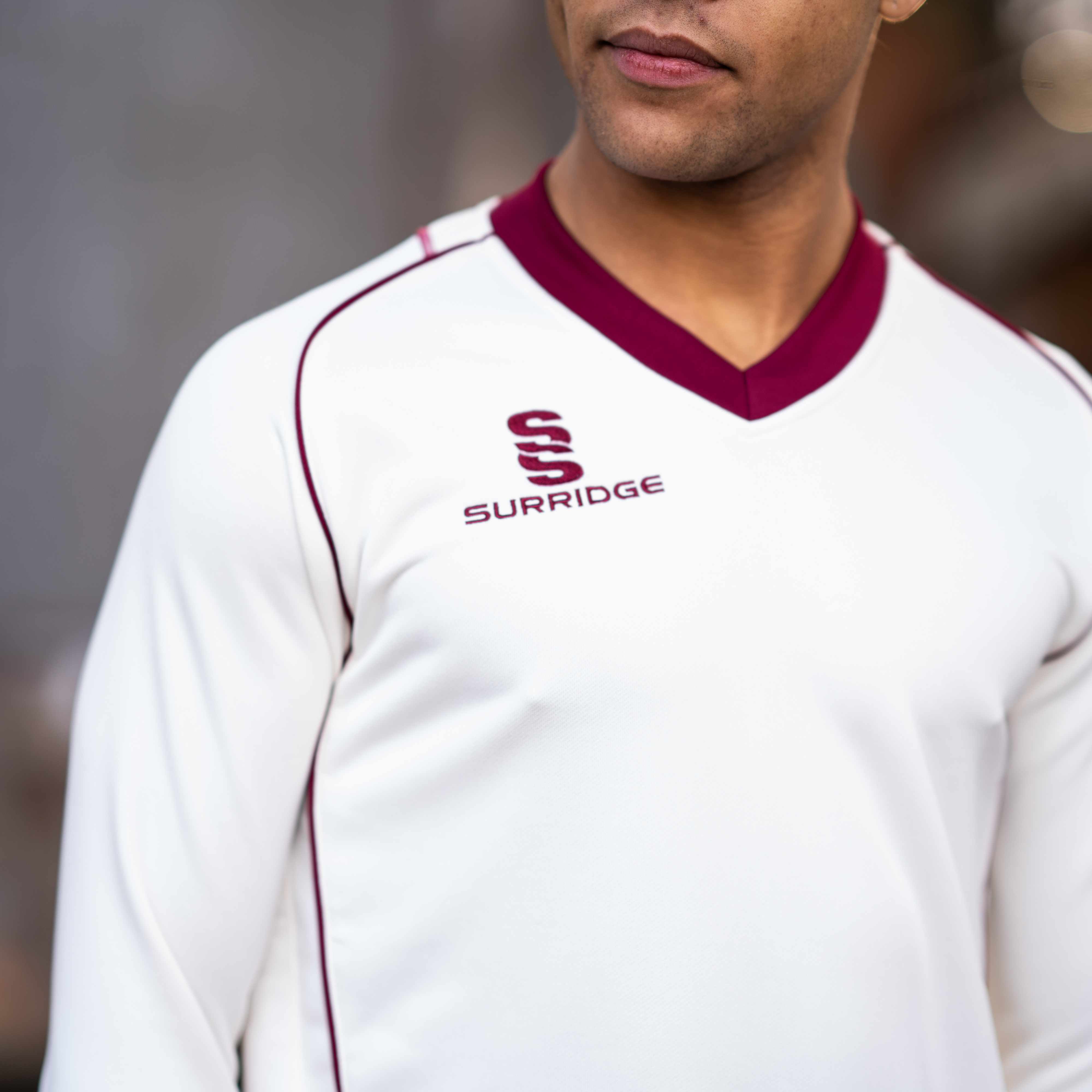 Cheadle Hulme CC - Curve Long Sleeve Sweater Maroon Trim - Unisex Fit