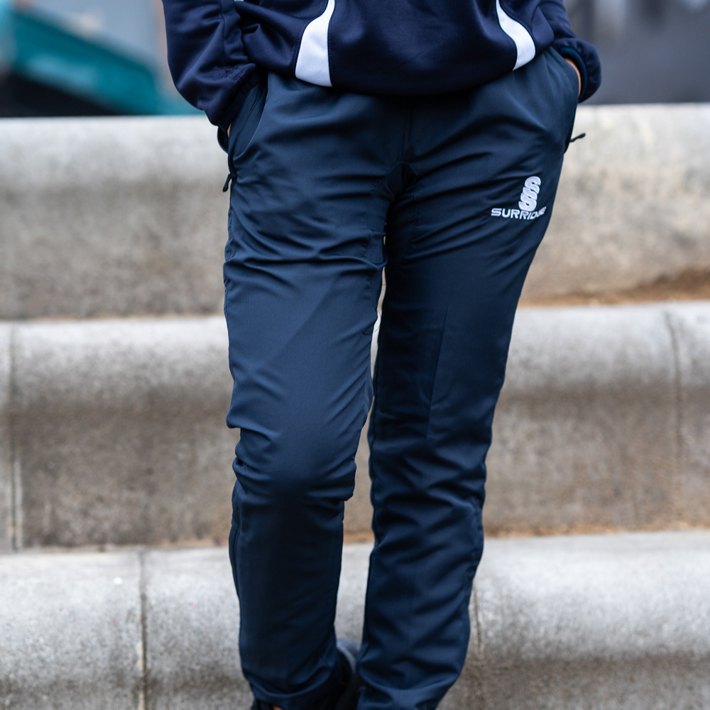 The Blade Ripstop Pants are made with a matte texture Ripstop-Polyester blend, with mesh upper lining and Nylon Tafeta lower lining. The Lycra gusset adds flexibility, comfort and extra strength. It comes with an inner waist draw cord, zipped pockets and a 12" side seam lower zip at hem. They are designed for a modern slimmer leg fit from knee downwards, with a slightly tapered leg. To finish, an embroidered SS Surridge logo is located on the left thigh.
